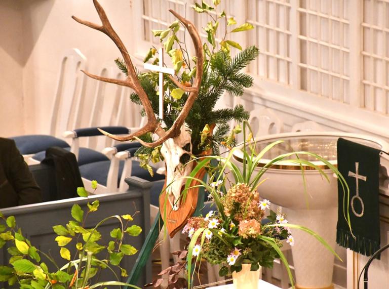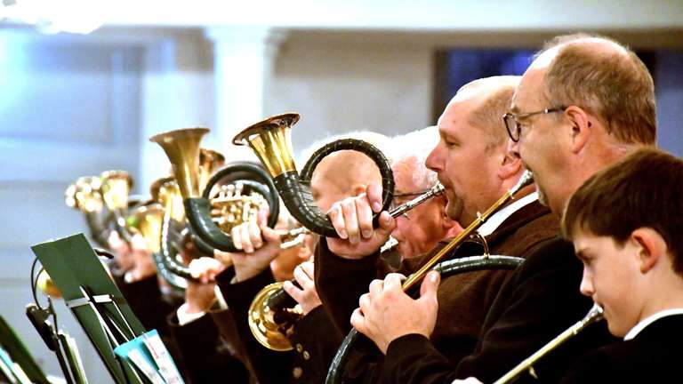 Harpstedt – Klangvoll empfingen die Jagdhornbläsergruppen aus Harpstedt und Wildeshausen die Besucher der Hubertusmesse in Harpstedt am späten Sonntagnachmittag schon vor Messebeginn. Die Christuskirche war mit viel Aufwand waidmännisch und herbstlich dekoriert worden. Auch das Geweih mit dem Kreuz in Anspielung auf die Hubertus-Legende fehlte vor dem Altar nicht.
