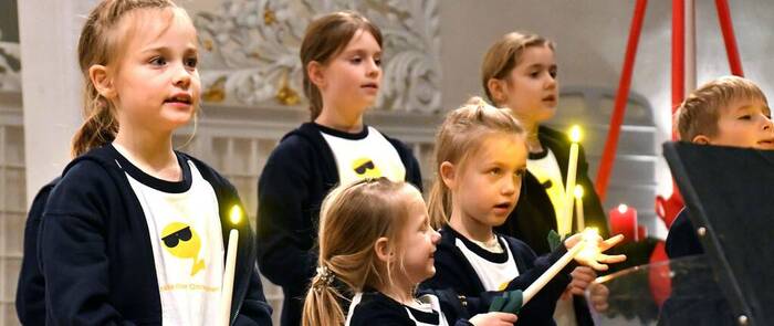 Die „Harpstedter Ohrwürmer“ versprühten unter der Leitung von Lena Blauth Weihnachtszauber: Nach „Nikolausmaus“ und „Schneemann Möhre“ ging ihnen nicht nur sprichwörtlich ein Licht auf: Als sie „Lichterkinder singen zur Weihnacht“ vortrugen, entzündeten sich auf Daumendruck von Blauth elektrische (LED-)Kerzen in den Händen der Chorkinder.