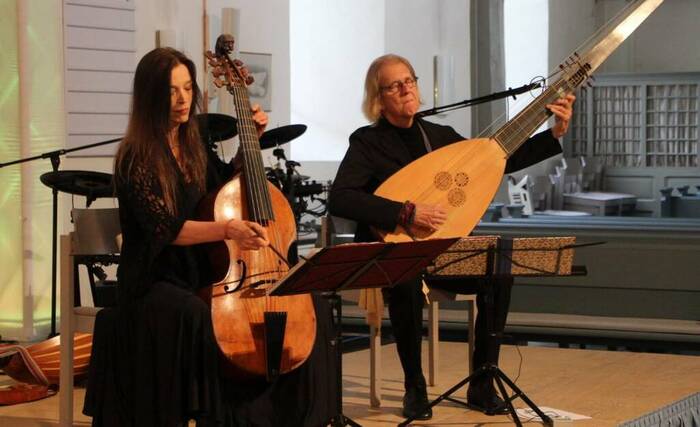 Den Anfang machte die Winkelsetterin auf der Viola da Gamba gemeinsam mit Lee Santana auf einer Laute. So ganz einfach sind die beiden Instrumentenfamilien nicht zu fassen, wurde deren Entwicklung doch im 15. Jahrhundert von verschiedenen Kulturen beeinflusst. Ihre Blütezeit erlebten sie während der Renaissance und im Frühbarock. Im 20. Jahrhunderts wurde die „Gambenfamilie“ wieder populärer, was vor allem einzelnen Musikern zu verdanken ist. Die gebürtige Bremerin Perl gehört zu jenen Gambistinnen. Gemeinsam mit dem Colnrader Lautenisten stellte sie einige Werke aus ihrem aktuellen Duoprogramm „European Variations“ vor.