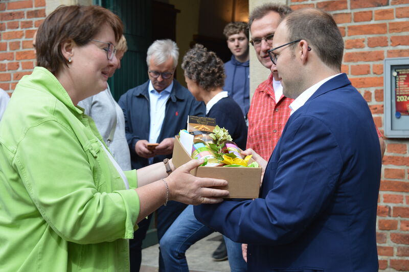 „Wir haben ihn schon ins Herz geschlossen“, sagte Kirchenvorsteher Klaus Corleis. Viele gute Wünsche bekam Maskow mit auf den Weg: aus Dienstgemeinschaft und Kirchenbüro genauso wie – nach dem Gottesdienst – aus der Gemeinde. Im Teampfarramt wird er an der Seite von Pastor Gunnar Bösemann für rund 4 700 Gemeindeglieder aus Harpstedt und den umliegenden Dörfern zuständig sein. Zunächst bleibt es bei einer Dreiviertelstelle. Maskow promoviert nämlich noch, und zwar zum Thema „Inklusion im Gottesdienst: Was muss getan werden, damit alle dabei sein können, die dabei sein wollen?“
