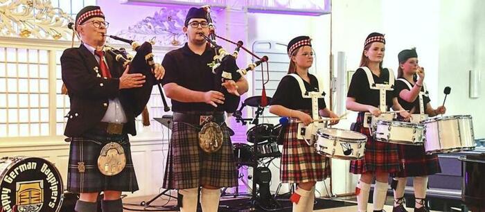 Die Gruppe, eine der außergewöhnlichsten Dudelsack-Showbands Deutschlands, verstand es, mit Frohsinn und Musikalität den redensartlichen Funken überspringen zu lassen. Der Klang der „Bagpipes“ verzauberte das Publikum ein ums andere Mal. „Viele der klassischen Dudelsackbands bevorzugen die schottischen Volkslieder. Wir sind da etwas breiter aufgestellt und haben ein weiter gefächertes Repertoire“, versprach Paulat – und übertrieb damit nicht.