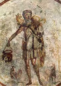 - 2. Misericordias Domini - Das heißt „Barmherzigkeit Gottes“. Dieser 2. Sonntag nach Ostern wird auch der „Sonntag des Guten Hirten“ genannt. Die ältesten bekannten Darstellungen von Jesus waren keine Kreuzesabbildungen, sondern sie zeigen uns einen Hirten, der ein Schaf auf den Schultern trägt. Er rettet dieses Schaf, er geht auch jedem einzelnen verlorenen Schaf hinterher. Das Bild hier zeigt den „Guten Hirten“ in einer Abbildung aus dem 3. Jahrhundert, gefunden in der Kalixtus-Katakombe in Rom.